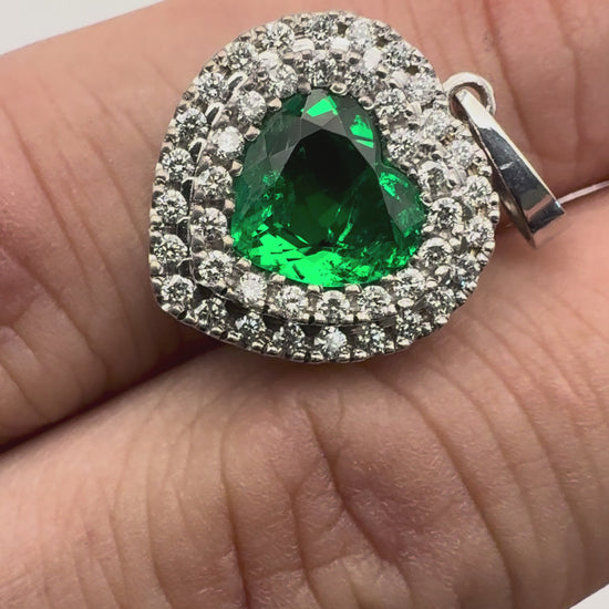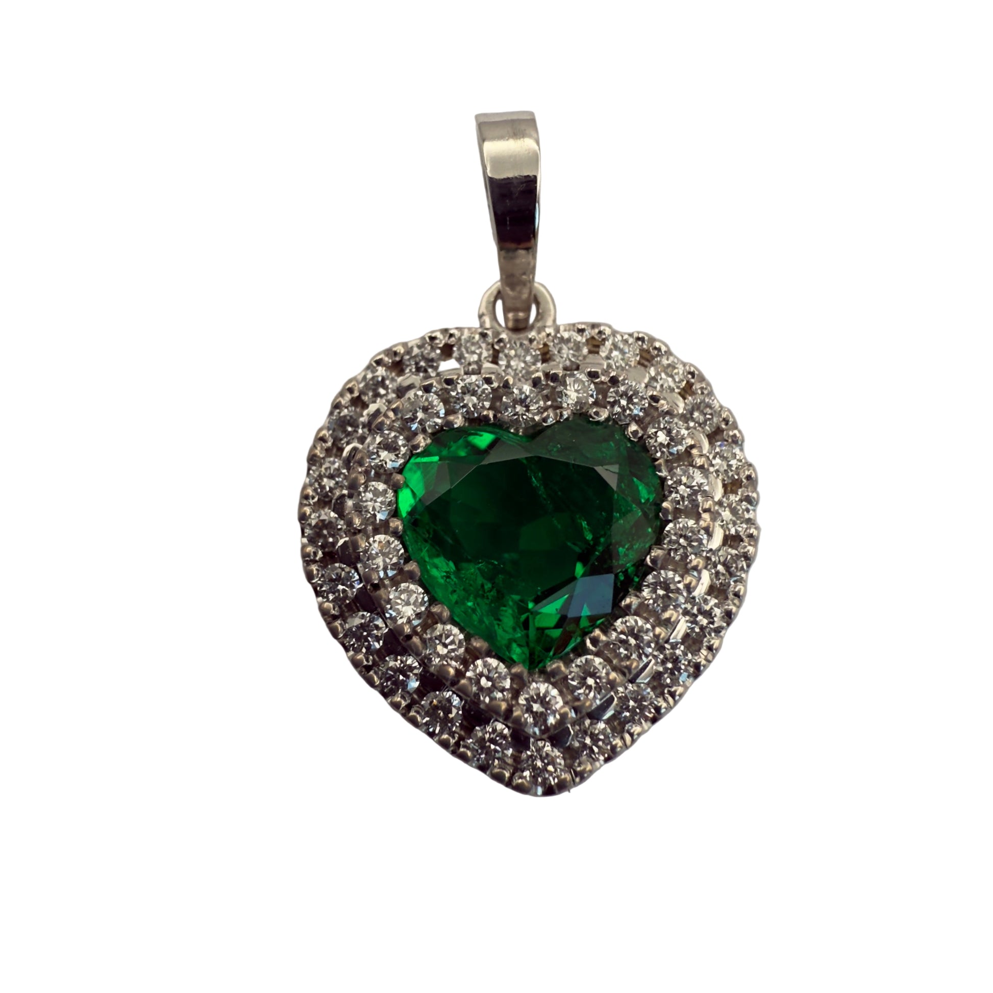 Investment-Quality Heart Colombian Emerald Diamond Pendant – 1.25 ct | Double Diamond Channel | 18K Gold